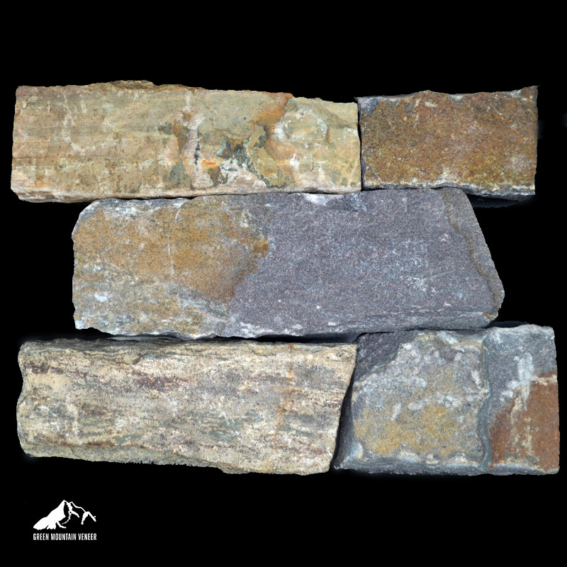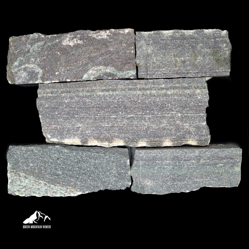 This Vermont quarried stone is a metamorphic rock consisting of granite, mica schist and quartz and features a blue to black color with a touch of tan.